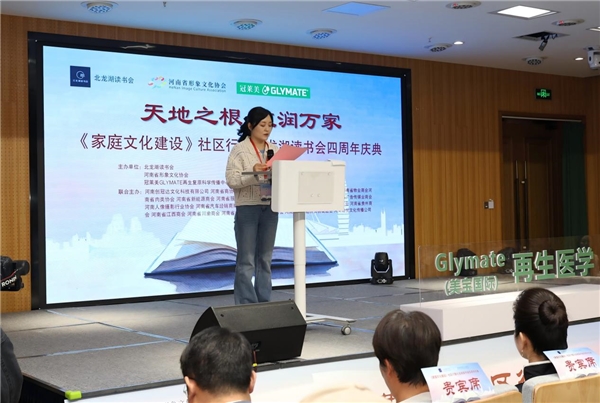 (记者蔡嘉 摄影阴福根 李红云 周强 何郑吉 刘庆团)4月23号是世界读书日,由北龙湖读书会 、河南省形象文化协会和冠莱美GLYMATE再生复原科学传播中心主办、创冠达文化科技有限公司、社区文化中心联合主办的家庭文化建设社区行暨北龙湖读书会四周年庆典活动在郑州西亚斯外籍子女学校举行。来自北龙湖社区业主和社会各界人士两百余人参加了本次活动。